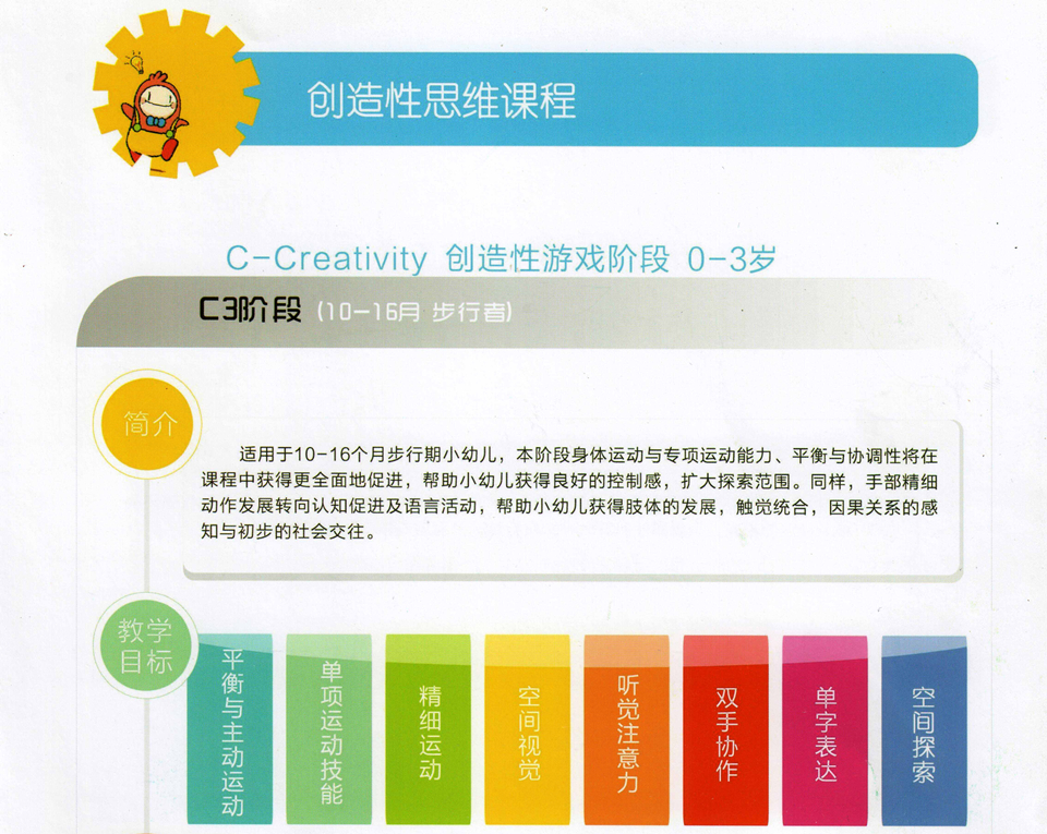 幼兒特性:此階段的幼兒走路、站立、跑步、跳躍、蹲下、滾、登高、越過障礙物等動作都已熟練駕馭,探索方式豐富,欲望強烈;此階段的幼兒基本掌握了母語口語表達,也喜歡自己創(chuàng)造一些精彩詞語,喜歡聽故事,也能簡單復述故事;開始尋找伙伴,注意力轉移到周圍年齡相仿的小朋友身上,并試著主動建立友誼,分享玩具等社交活動;初步建立抽象概念。